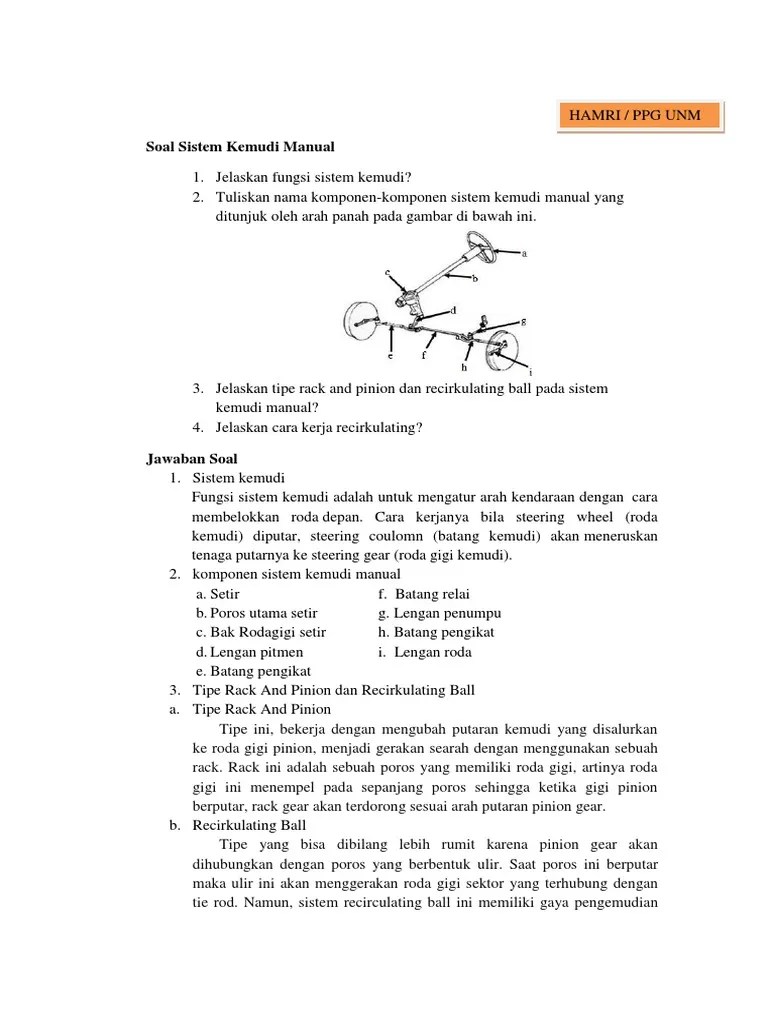 Contoh Soal Sistem Kemudi Pilihan Ganda Beserta Jawabannya / Contoh Soal Tentang Kelistrikan Mobil Beserta Jawabannya / Yang termasuk tiga komponen utama roda yaitu.. Meningkatkan kestabilan pada sistem kemudi kendaraan. Berikut adalah tipe roda kecuali. Berfungsi menghubungkan tie rod di sebelah kanan dan sebelah kiri adalah…. Biologi kelas 8 contoh soal jawaban soal ulangan materi ipa semester 2 pembahasan soal pertanyaan tentang sistem ekskresi sistem ekskresi pada . Komponen utama sistem suspensi adalah sebagai berikut, kecuali.